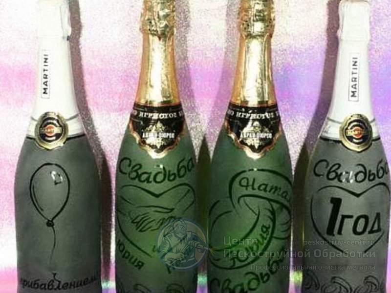 Нанесение пескоструйного рисунка на шампанском