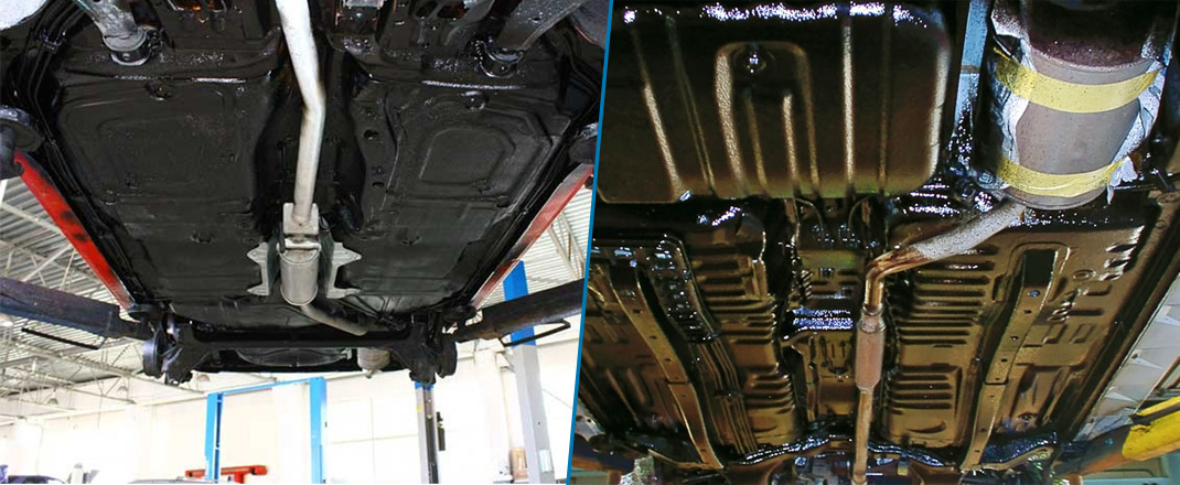 Процесс взаимодействия покрытия с металлом во время обработки приводит к образованию пассивной формы оксида железа на днище автомобиля. Ингибирующие вещества, входящие в состав используемых материалов, позволяют защитному слою равномерно распределяться по поверхности, а механическим повреждениям самостоятельно затягиваться.
