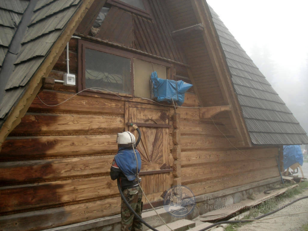Пескоструйная чистка деревянных брусчатых домов в